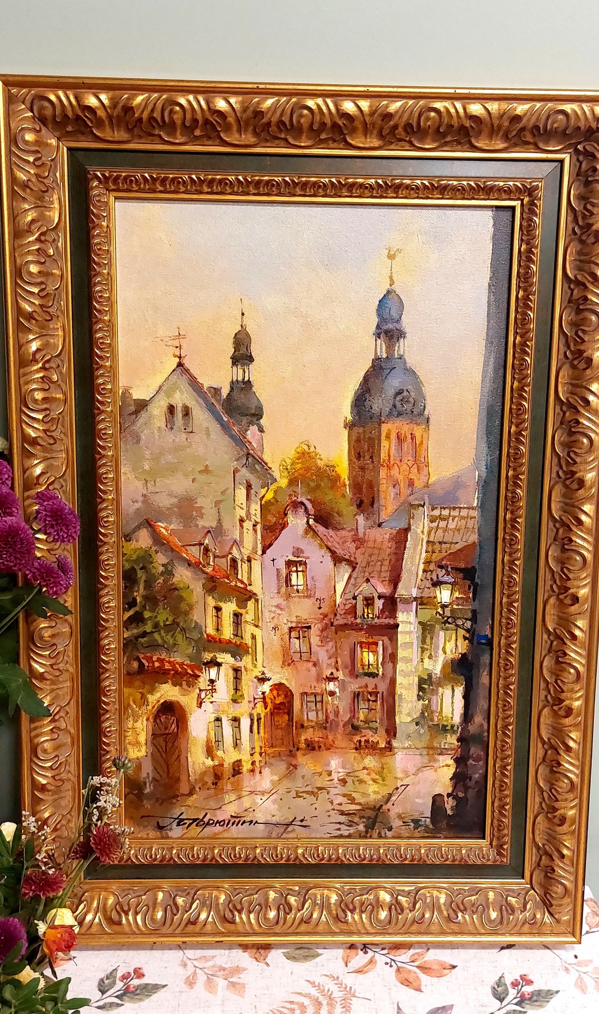 Мы закончили разговор. Я положила трубку, и мне показалось, что комната стала чуть светлее. Как будто он где-то рядом — там, за холстом, где всё начинается с воздуха и заканчивается светом. Картина на стене снова смотрела на меня своей мостовой, окнами, золотистыми отблесками на фасадах.