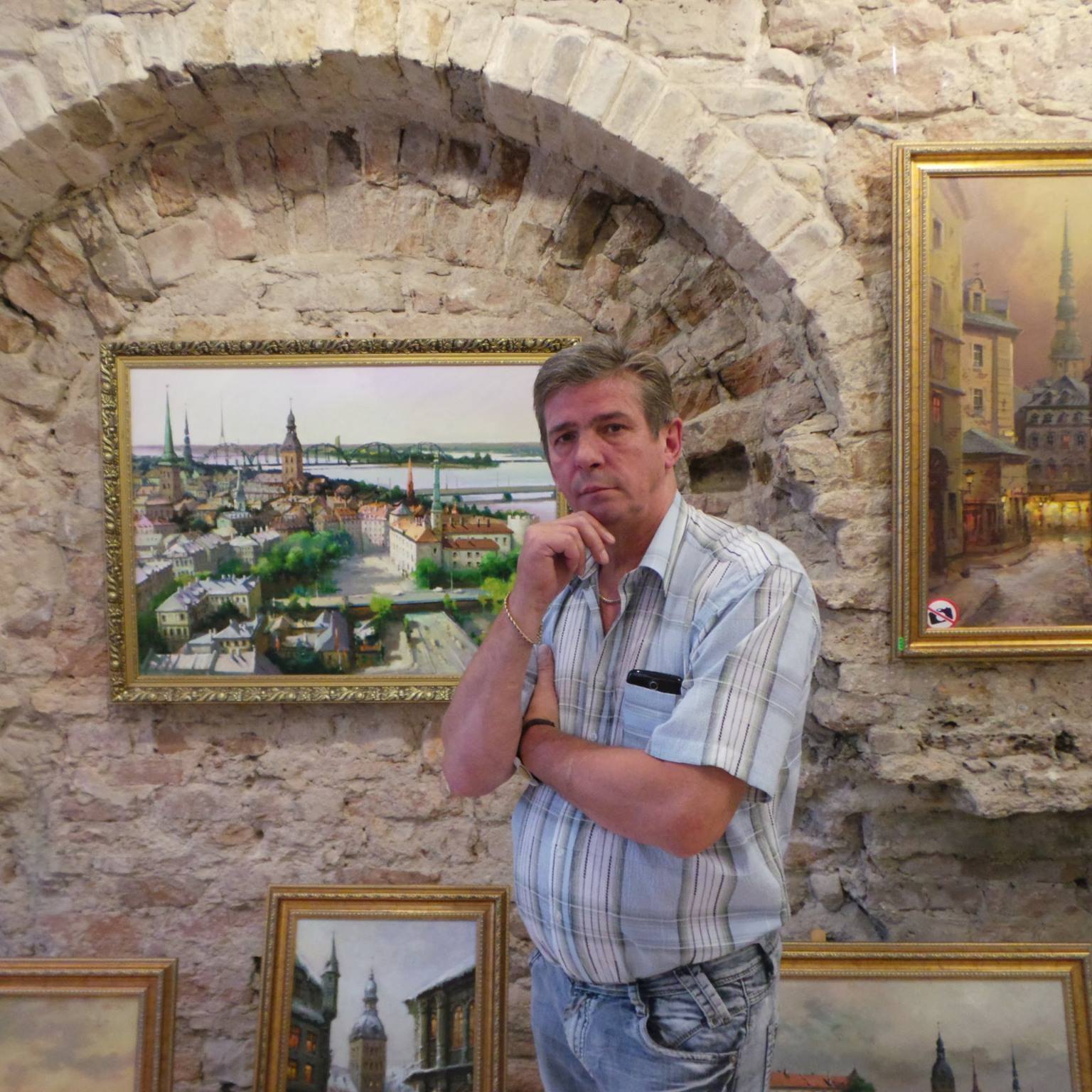 «В фойе гостиниц на улице Калкю висят мои работы. Там большие холлы — по шесть, по семь метров полотна со Старой Ригой. Их купили хозяева гостиниц, они там будут висеть всегда.»