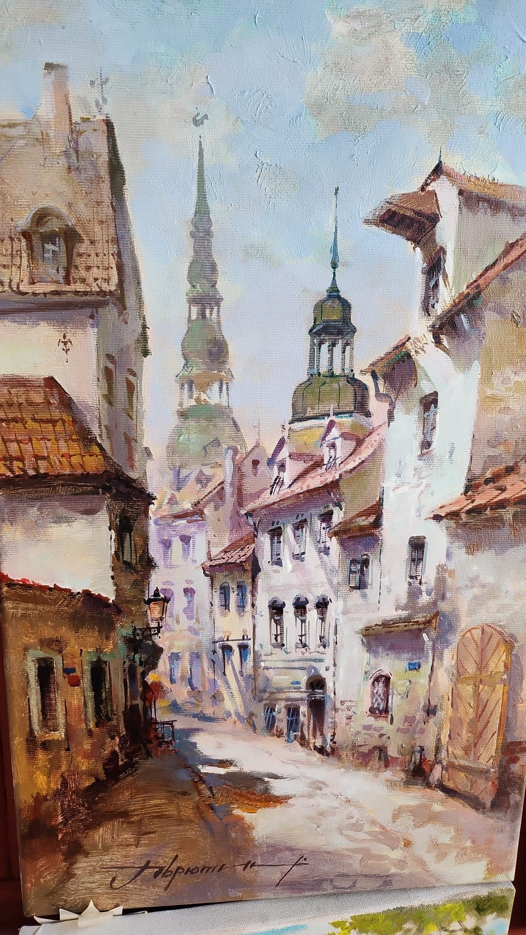«Рига всегда нравилась. Она живописная. Её можно смотреть бесконечно — просто добавить свет, погоду, настроение, и получится новая работа. Я не пишу фото-Ригу, я передаю то чувство, которое возникает, когда смотришь на город.»