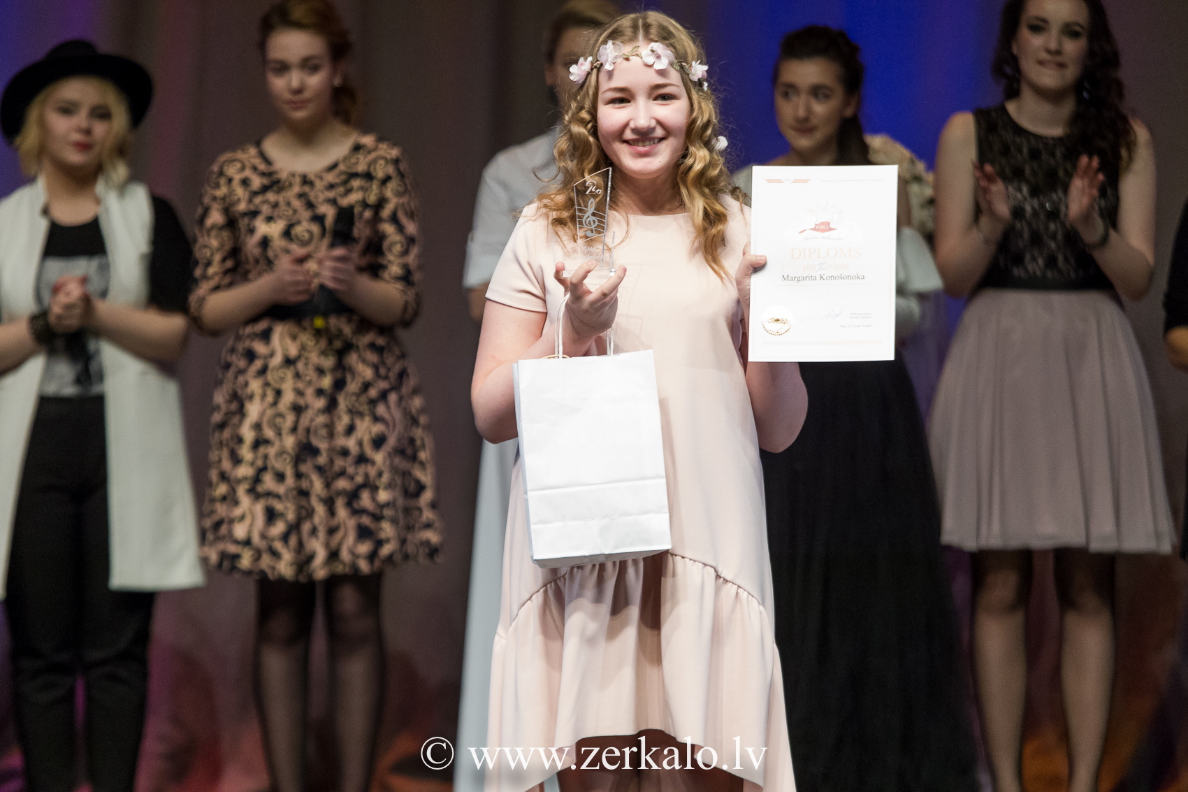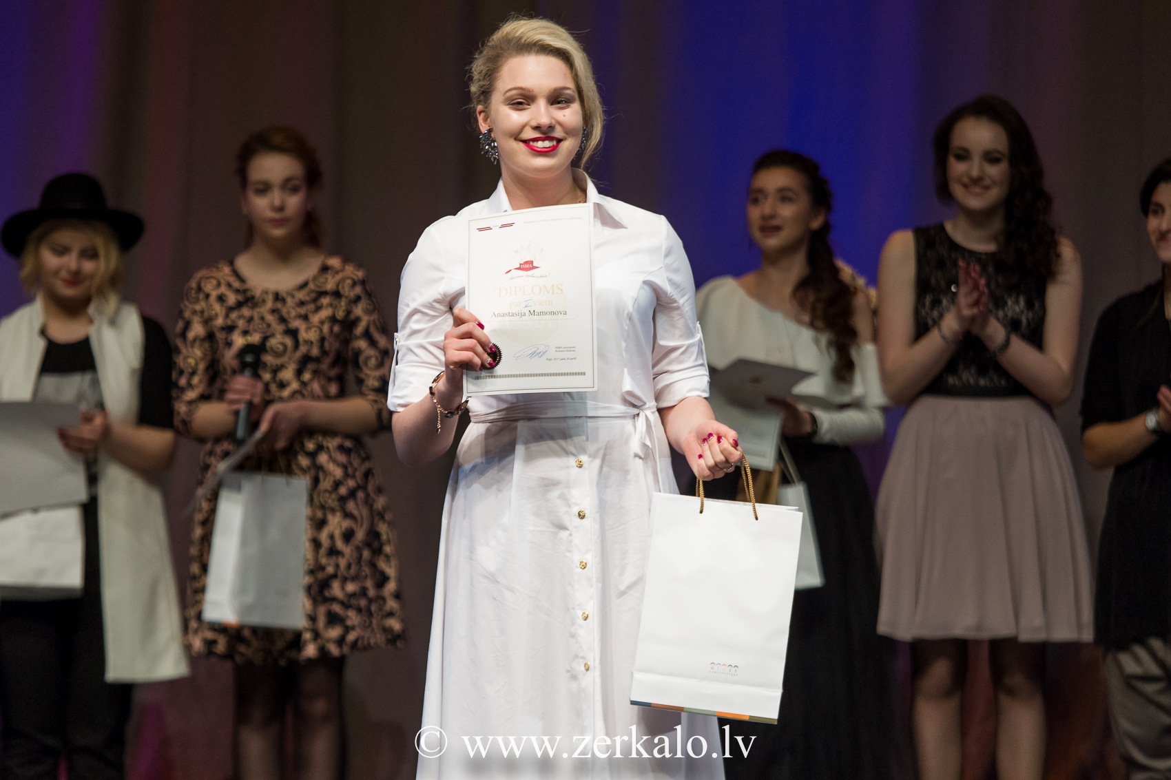 Второе место и бурные аплодисменты зрителей достались Наталии Вернере. Также конкурсантка получила сертификат на бесплатное обучение на год в Латвийском Колледже Культуры.