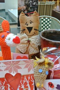 На стенде можно было найти ангелочков, цветы из полимерной глины, открытки сделанные своими руками, декоративные шкатулки и подушки, валяные игрушки и вязаные изделия. Керамические поделки и брелки, бабочек из бисера и вышитые картины, акварельные шедевры, расписанные кружки и вазы. В общем, фантазия участников акции была безграничной, а сердца добрыми и светлыми.