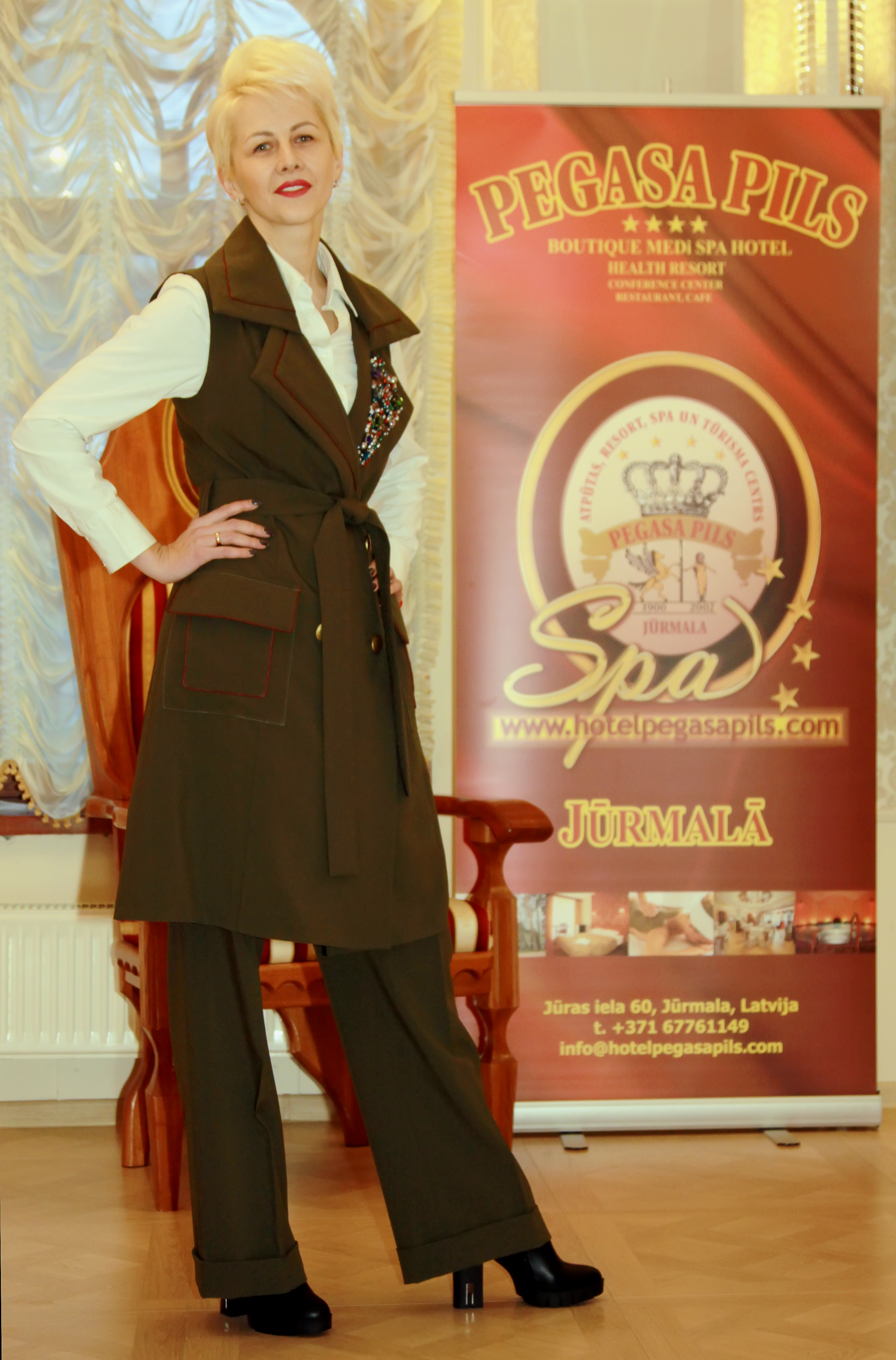 «В минувшую субботу прошло очередное «спасительное преображение» это именно то место где я познакомилась в прошлом году с безумно интересной, красивой, шикарной женщиной и талантливым дизайнером Викторией Пучкориене. Я в восторге от ее работ. Мне выпала счастливая возможность быть моделью на ее показе! Я была в роскошном красном платье-халат в пол. В котором, проходя по подиуму, я чувствовала себя королевой и богиней. На этом платье безумно интересный воротник. Украшение на шею из бисера и камни Сваровски выполнено by Handmade Aleksandra Pimenova. И еще я выходила в костюме цвета хаки, это вообще моя любовь! Он с одной стороны очень дерзкий, а с другой женственный. Широкие брюки и безрукавка. А что надеть под безрукавку можно обыгрывать каждый раз по-разному: майку, рубашку, свитер — все будет смотреться хорошо. Ну и большой плюс, что эти две вещи могут быть самостоятельными. И можно носить как брюки, так и безрукавку, отдельно друг от друга!